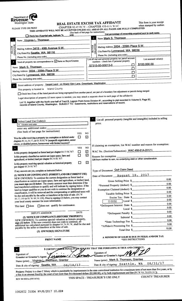 | Mailing Address: | MOLLY MARIE FOX 6160 LINCOLN ST CLINTON, WA 98236 | % Ownership: | 100.0000000000% |