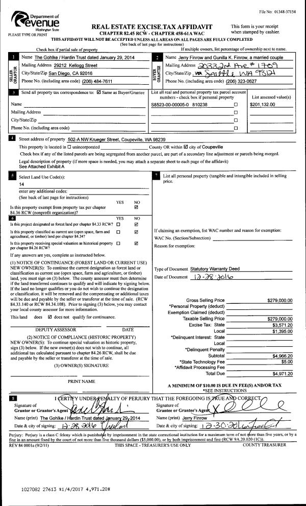 | Mailing Address: | 4487 VANDERWELL RD OAK HARBOR, WA 98277 | % Ownership: | 100.0000000000% |