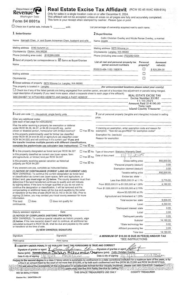 | Tax Area: | 710 - APPRAISER-S Whid Schl Dist, outside Langley, improved & 1 acre or less | Land Use Code | 11 |