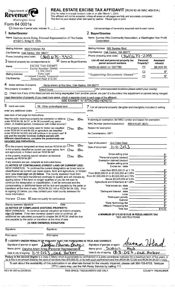 | Tax Area: | 719 - APPRAISER-S Whid Schl Dist, outside Langley, vacant & 50 acres or less | Land Use Code | 91 |