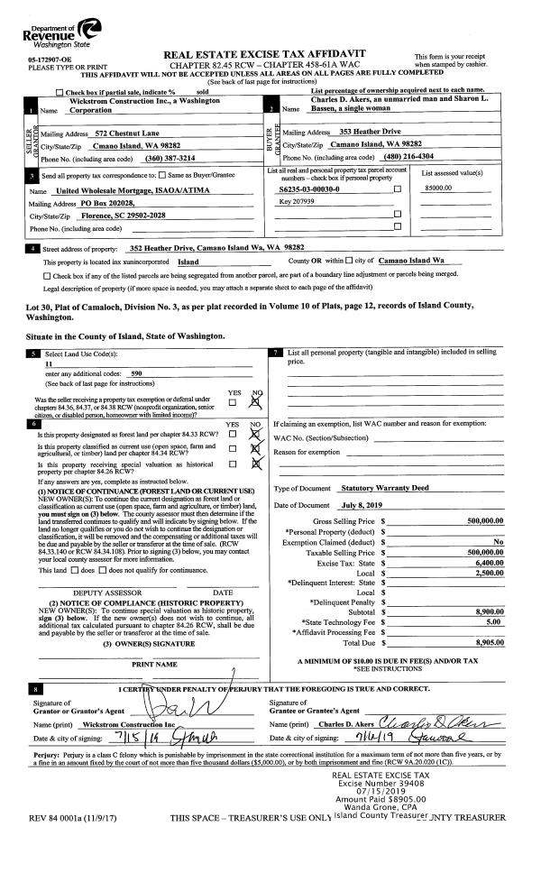 | 2 | 06/25/2019 | EZ | Easement | POOLMAN, SANDY | PUGET SOUND ENERGY | | | $2,502.00 | 39426 | 4467333 |