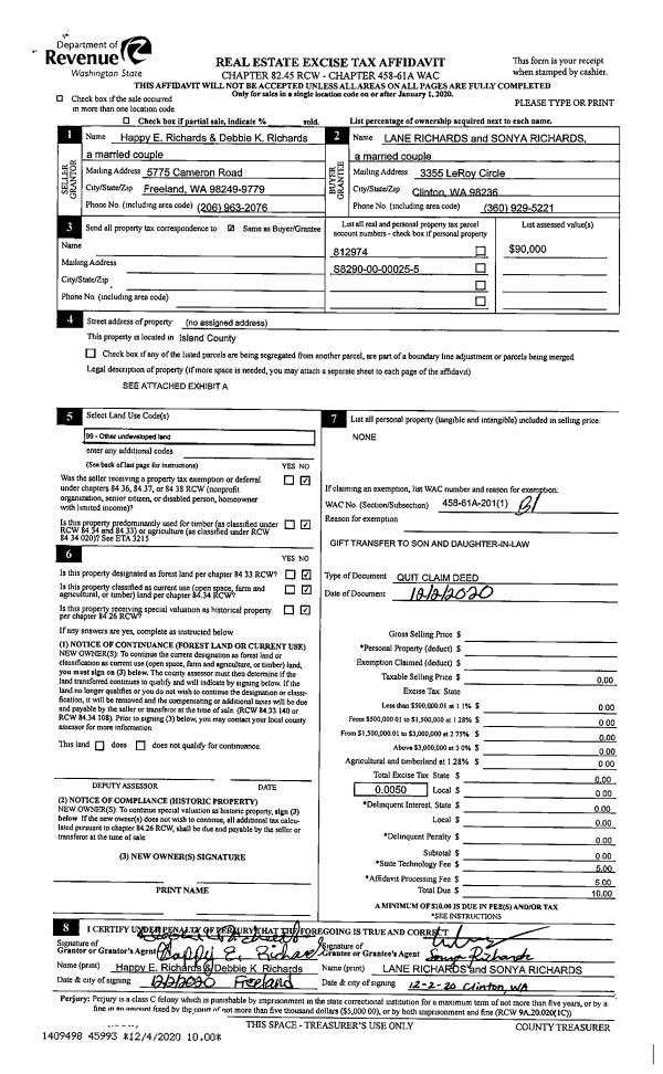 | Tax Area: | 712 - APPRAISER-S Whid Schl Dist, outside Langley, improved, greater than 1 acre | Land Use Code | 11 |