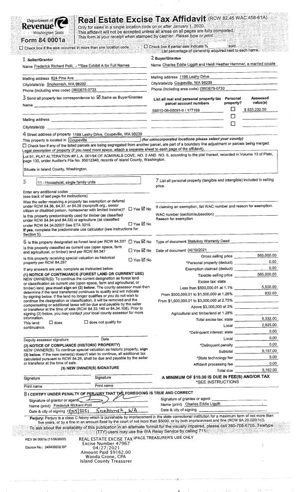 | Tax Area: | 719 - APPRAISER-S Whid Schl Dist, outside Langley, vacant & 50 acres or less | Land Use Code | 83 |