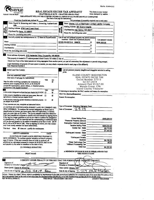 | Mailing Address: | 87 LEAF LN GREENBANK, WA 98253 | % Ownership: | 100.0000000000% |