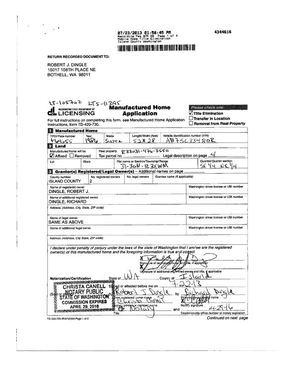| 6 | 06/28/2004 | QCD | Quit Claim Deed | HOLTBY, KENNETH F | HOLTBY, KENNETH F | | | $0.00 | 43283 | 4107517 |