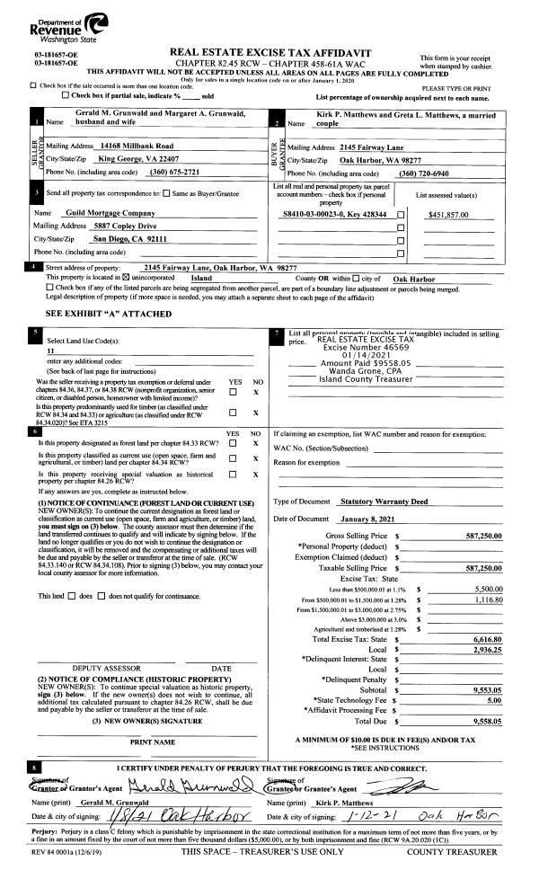 | 5 | 11/01/1994 | WD | Warranty Deed | NEUMANN, HARVEY E | BACKMAN, DAVE & | | | $190,000.00 | 44958 | 94025295 |