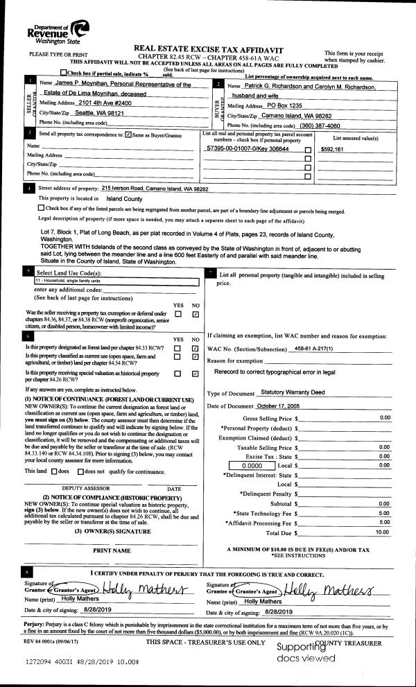 | 2 | 06/28/2017 | WD | Warranty Deed | WARD, SUSAN E | OTIS, LEO EDWARD | | | $630,000.00 | 29958 | 4425146 |