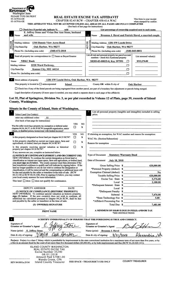 | Mailing Address: | 4641 FELIX LN OAK HARBOR, WA 98277 | % Ownership: | 100.0000000000% |