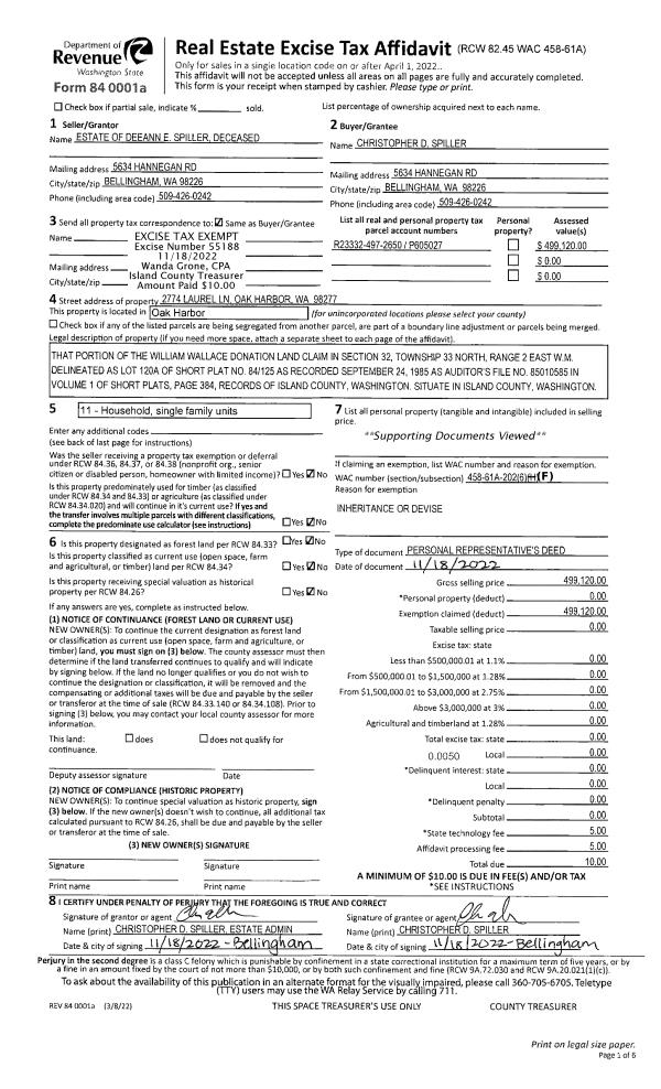 | Mailing Address: | NADINE E GUIDRY 1169 NE TAFTSON ST OAK HARBOR, WA 98277 | % Ownership: | 100.0000000000% |