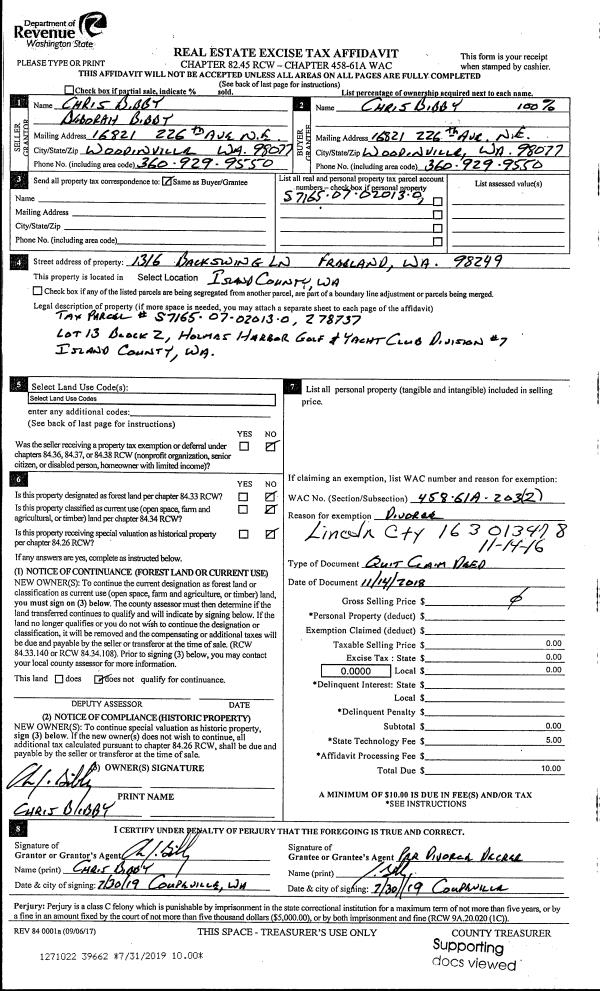 | Mailing Address: | DEBORAH SLIVINSKY 6256 SOUTH NEUPERT RD FREELAND, WA 98249 | % Ownership: | 100.0000000000% |