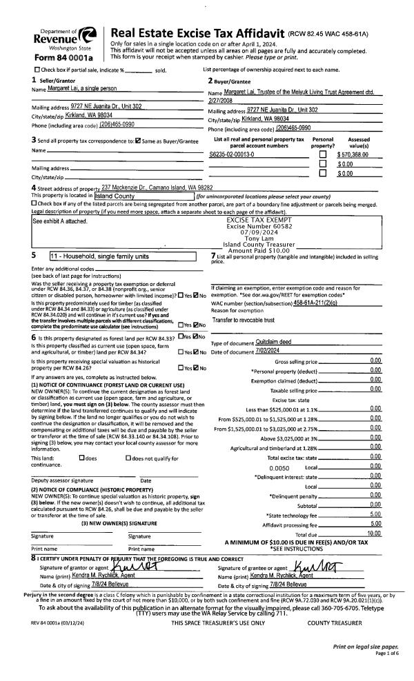 | Mailing Address: | KIMBERLY M FRANSSEN 477 RICHARD RD OAK HARBOR, WA 98277-9615 | % Ownership: | 100.0000000000% |