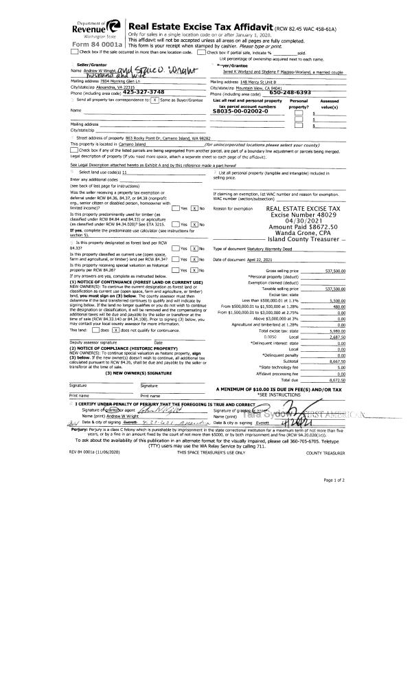 | Tax Area: | 719 - APPRAISER-S Whid Schl Dist, outside Langley, vacant & 50 acres or less | Land Use Code | 91 |