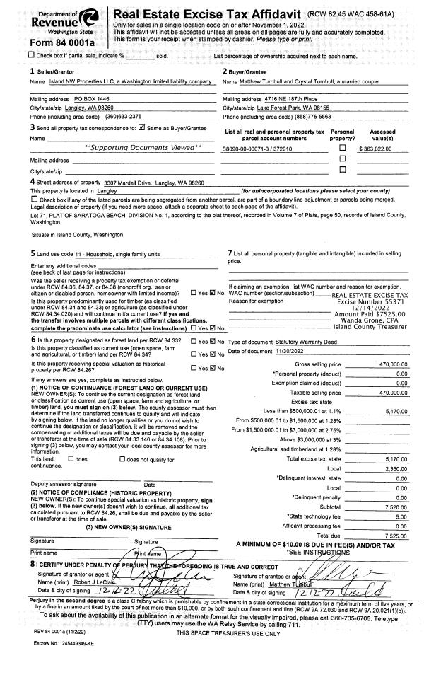 | Mailing Address: | 320 HOMESTEAD RD OAK HARBOR, WA 98277 | % Ownership: | 100.0000000000% |