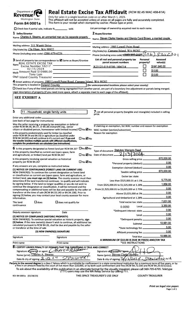 | Mailing Address: | 700 NW CROSBY AVE #10 OAK HARBOR, WA 98277 | % Ownership: | 100.0000000000% |