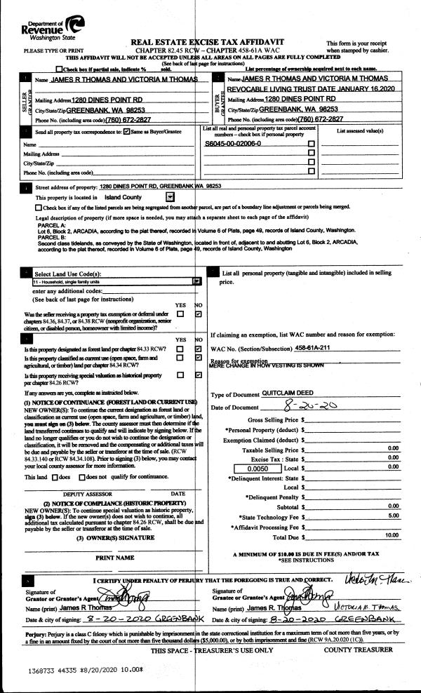 | Mailing Address: | PAMELA TAYLOR 1454 MUTINY LN FREELAND, WA 98249 | % Ownership: | 100.0000000000% |