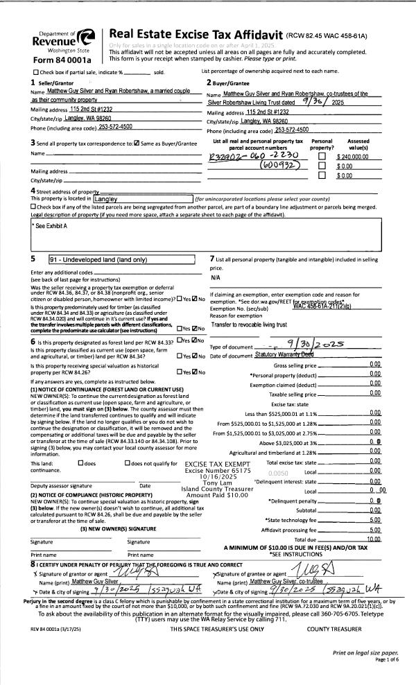| Mailing Address: | TYEE MOBILE HOME PARK 2339 MILLMAN RD LANGLEY, WA 98260 | % Ownership: | 100.0000000000% |