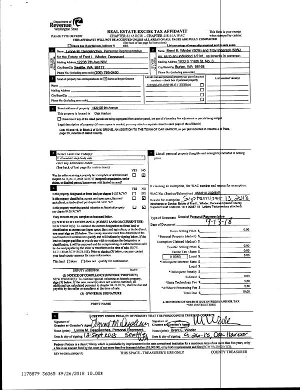 | 1 | 11/16/2018 | EZ | Easement | WHIDBEY INSTITUTE | WHIDBEY INSTITUTE | | | $175,000.00 | 36869 | 4455941 |