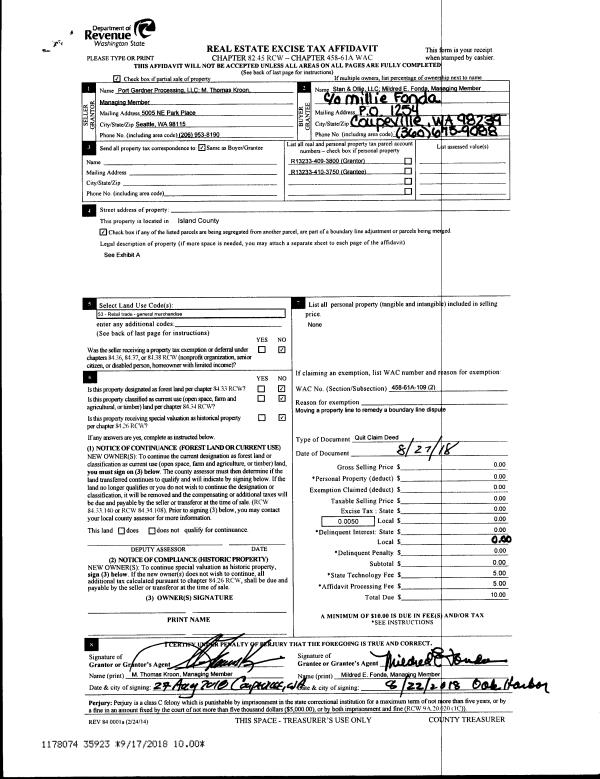 | Mailing Address: | GIOCONDA I WOODEN 180 HORIZON WAY CAMANO ISLAND, WA 98282 | % Ownership: | 100.0000000000% |
