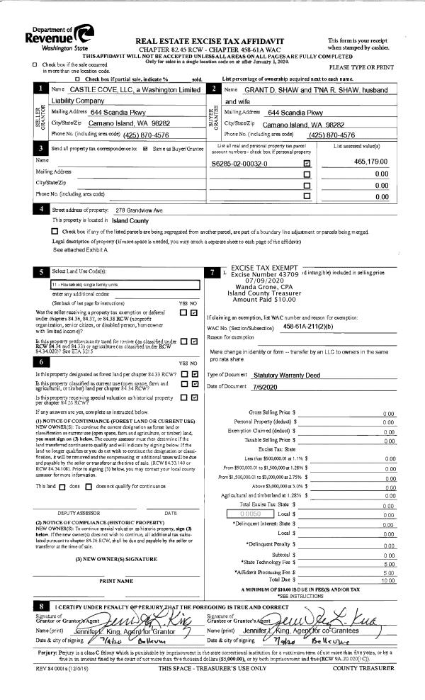| Mailing Address: | 949 TOMCHUCK LN GREENBANK, WA 98253-9600 | % Ownership: | 100.0000000000% |