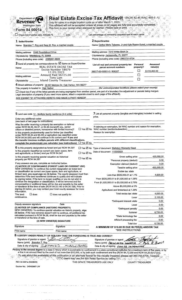 | Mailing Address: | 75 NW COLUMBIA DR UNIT A203 OAK HARBOR, WA 98277 | % Ownership: | 100.0000000000% |