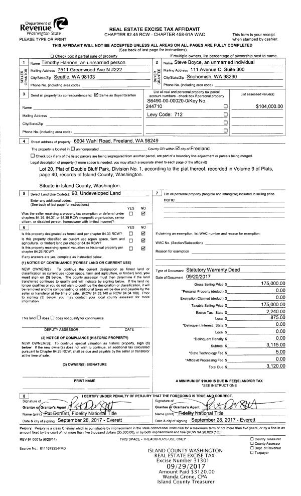 | 7 | 04/01/1994 | WD | Warranty Deed | HILBORN, ARTHUR R | HILBORN, ARTHUR R | | | $0.00 | 41578 | 94009547 |