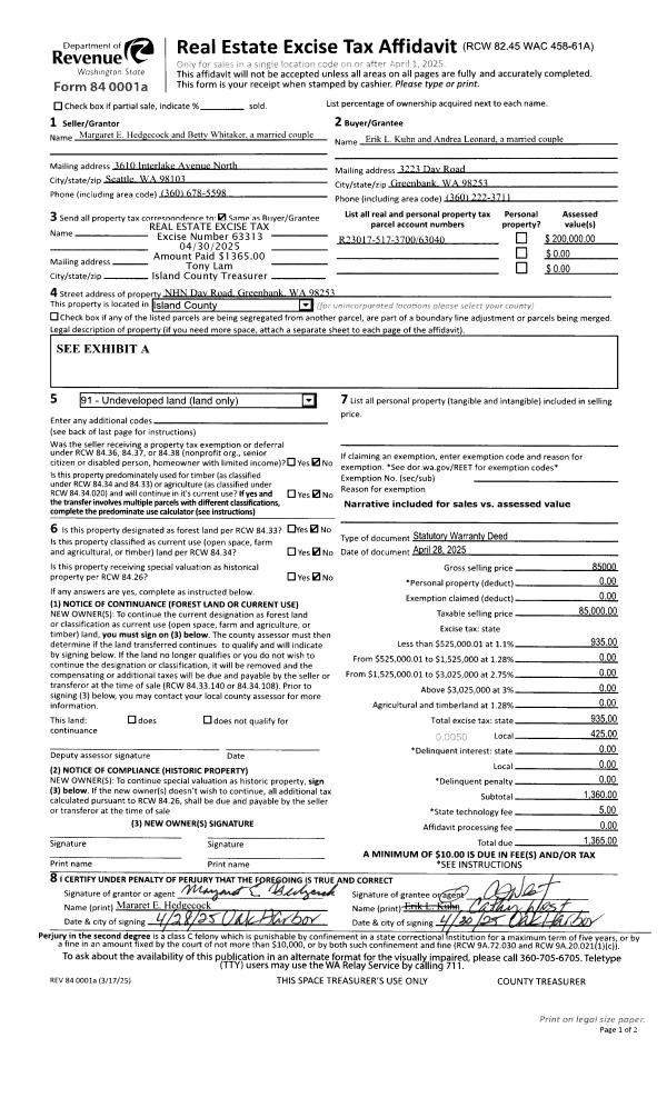 | Tax Area: | 712 - APPRAISER-S Whid Schl Dist, outside Langley, improved, greater than 1 acre | Land Use Code | 11 |