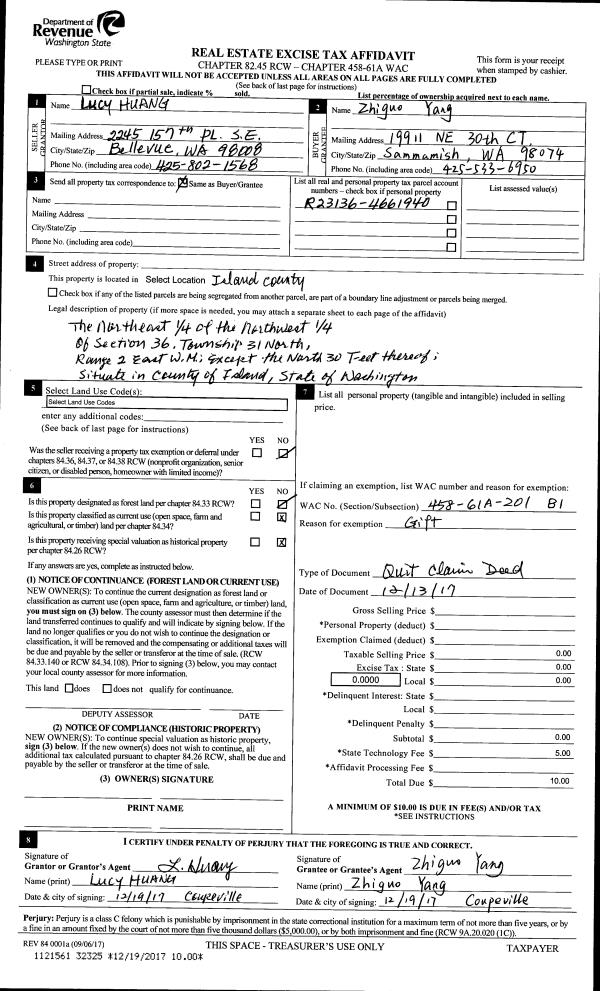 | Mailing Address: | CHRISTINA LYNN PEEBLES 265 TORRENCE LN OAK HARBOR, WA 98277 | % Ownership: | 100.0000000000% |