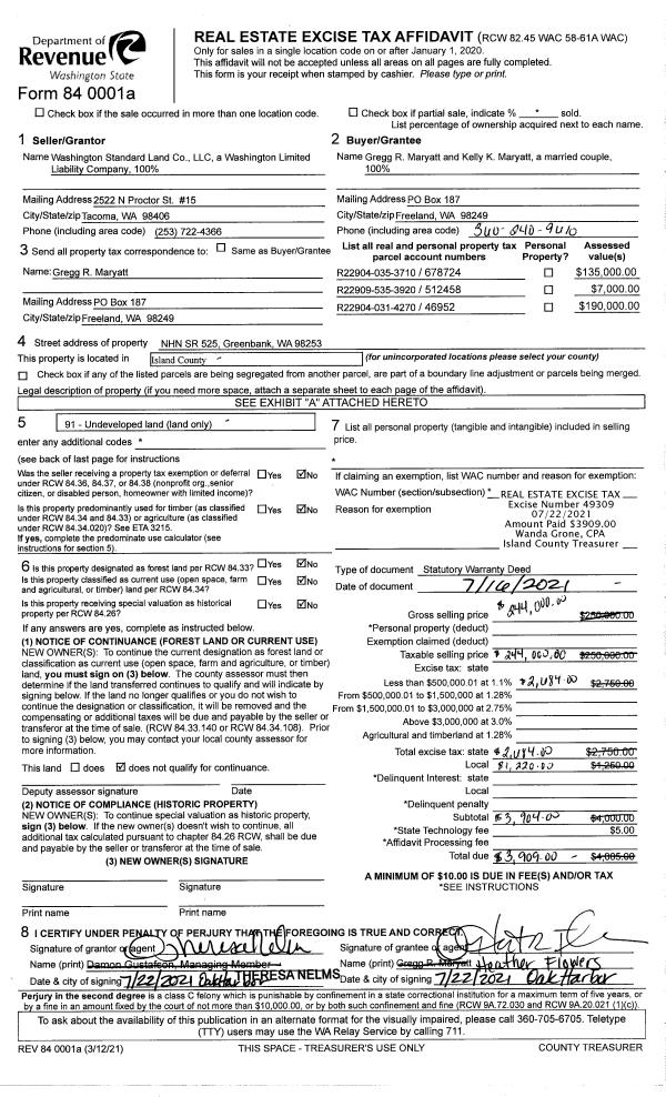 | Mailing Address: | 6425 PLUM TREE LN CLINTON, WA 98236-9628 | % Ownership: | 100.0000000000% |