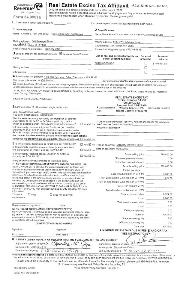 | Mailing Address: | 766 VESPER WAY CAMANO ISLAND, WA 98282 | % Ownership: | 100.0000000000% |