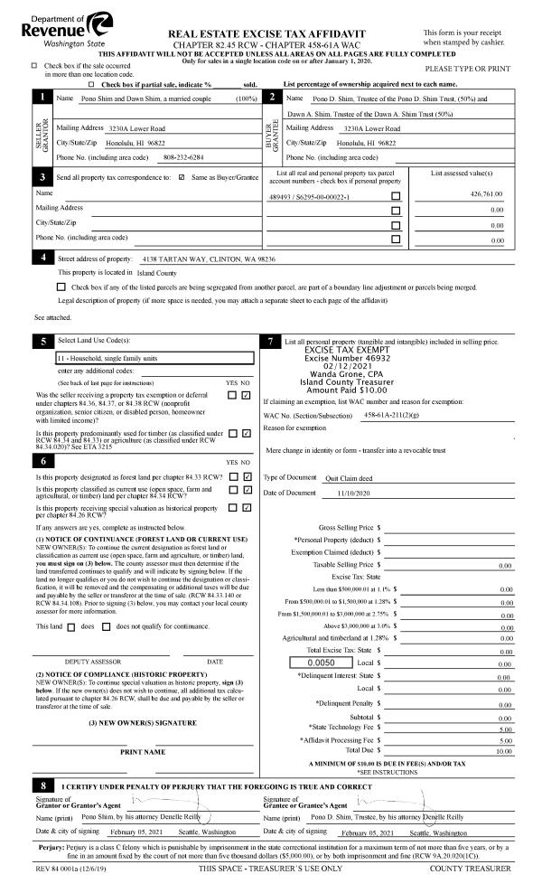 | SWHIDPRBD | P & R S Whidbey BOND | 0.0152817568 | $853,160 | $853,160 | $13.04 | | |