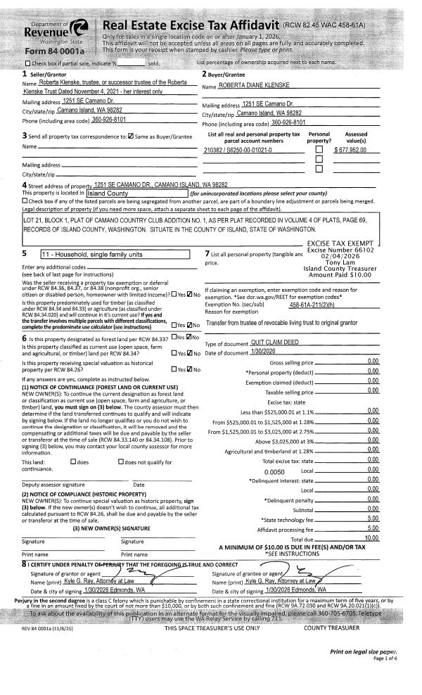 | Mailing Address: | 701 S MAIN ST TRLR 30 COUPEVILLE, WA 98239-3515 | % Ownership: | 100.0000000000% |