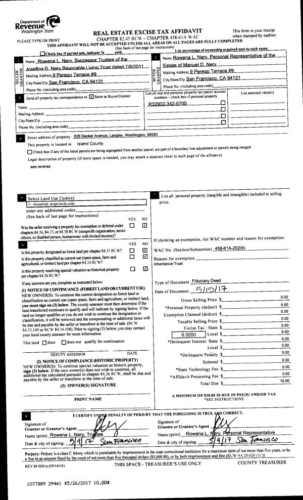 | Mailing Address: | 37736 SR 20 OAK HARBOR, WA 98277 | % Ownership: | 100.0000000000% |