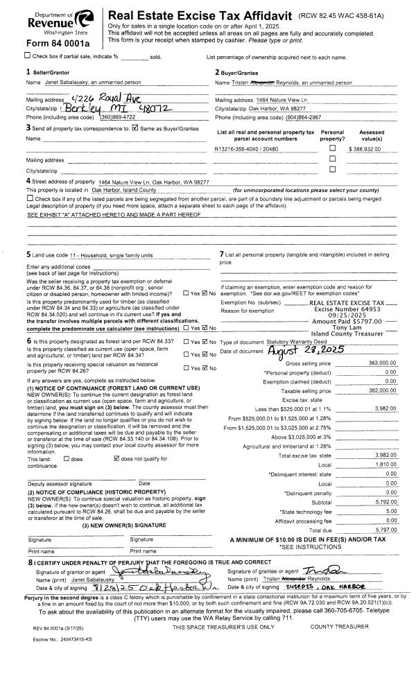 | Mailing Address: | 853 SKYLARK PLACE OAK HARBOR, WA 98277-8290 | % Ownership: | 100.0000000000% |