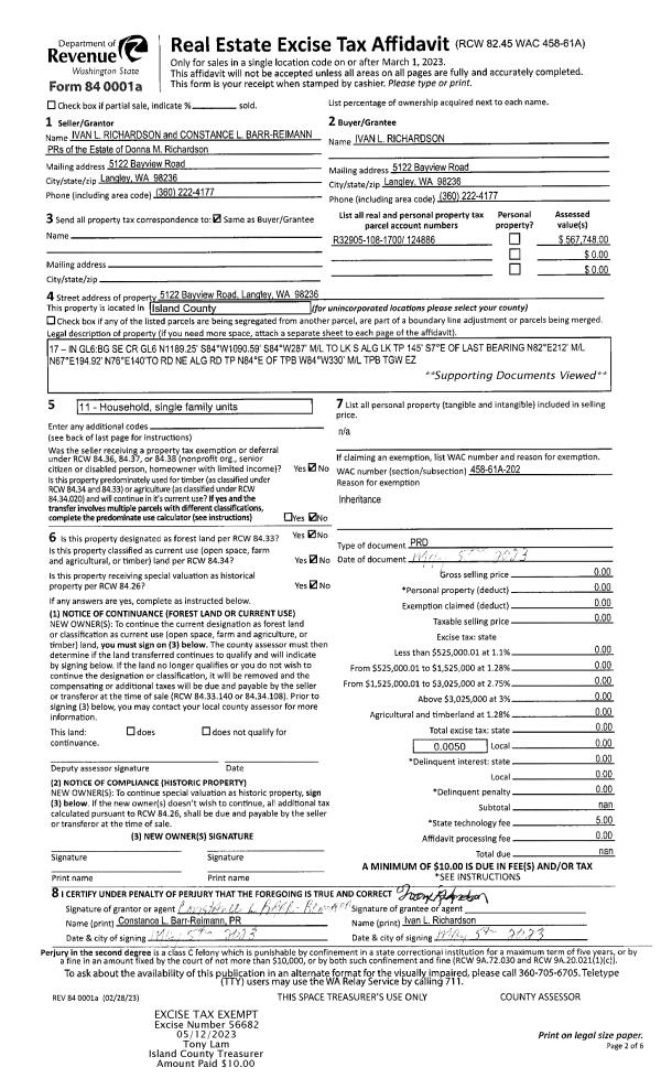 | Mailing Address: | 1481 STATE HIGHWAY 532 CAMANO ISLAND, WA 98282-8839 | % Ownership: | 100.0000000000% |