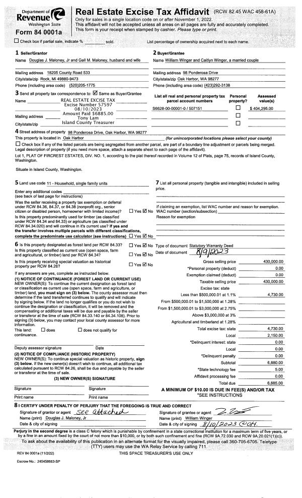 | Mailing Address: | MARIA HAZELO 730 SOUNDVIEW LN OAK HARBOR, WA 98277 | % Ownership: | 100.0000000000% |