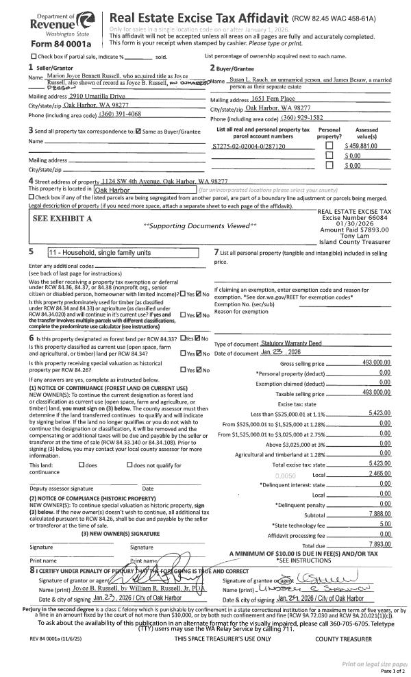 | 1 | 11/20/2003 | WD | Warranty Deed | Unknown | ISLAND COUNTY PUBLIC WORKS, | | | $55,217.00 | 40062 | 4087872 |