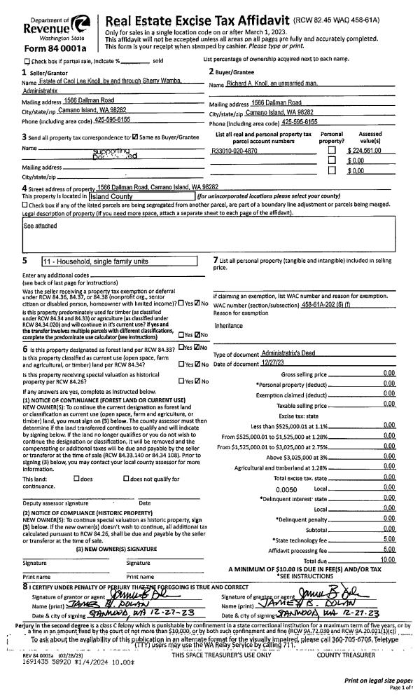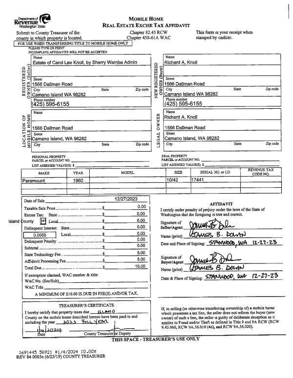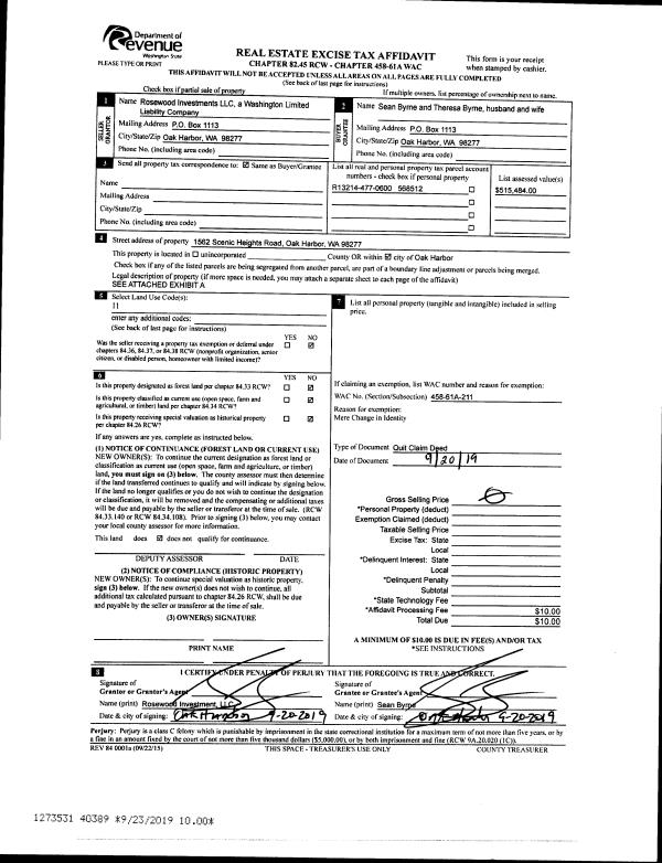 | Mailing Address: | 3295 TRANQUILITY PL OAK HARBOR, WA 98277 | % Ownership: | 100.0000000000% |