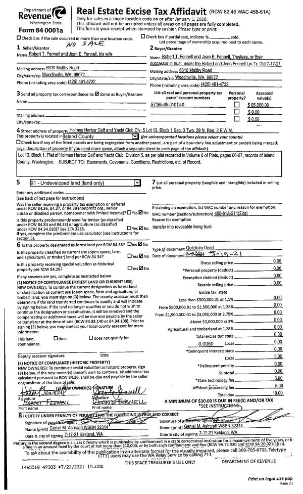| Mailing Address: | SHARON E GERHARD BOX 285 CLINTON, WA 98236 | % Ownership: | 100.0000000000% |