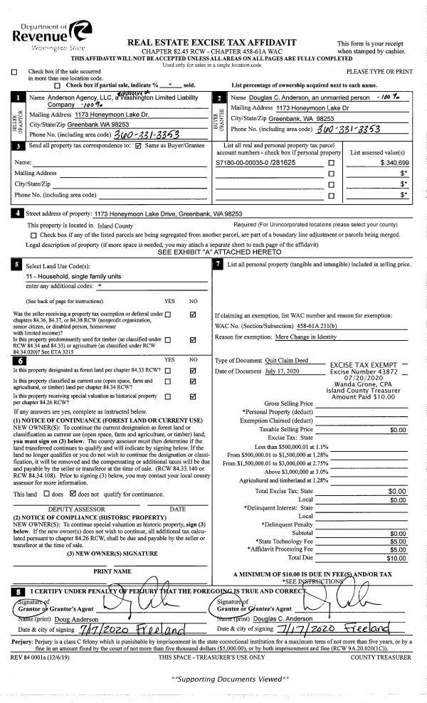 | Mailing Address: | 2890 N OAK HARBOR RD #5 OAK HARBOR, WA 98277 | % Ownership: | 100.0000000000% |