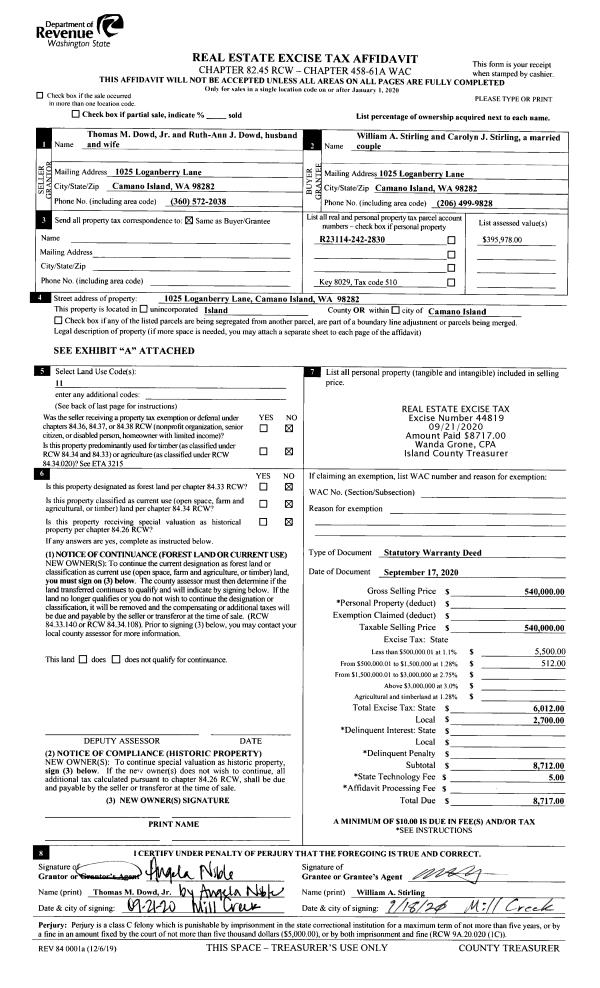 | Tax Area: | 712 - APPRAISER-S Whid Schl Dist, outside Langley, improved, greater than 1 acre | Land Use Code | 11 |