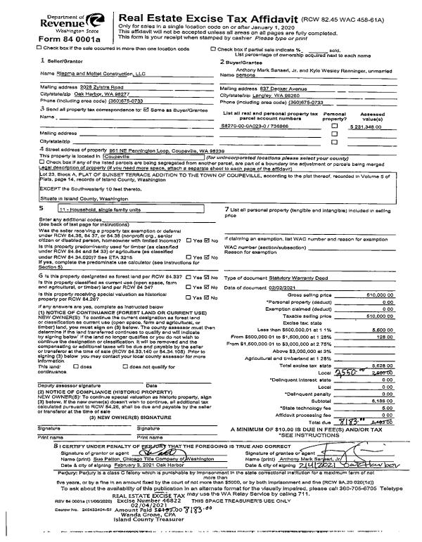 | Tax Area: | 719 - APPRAISER-S Whid Schl Dist, outside Langley, vacant & 50 acres or less | Land Use Code | 91 |
