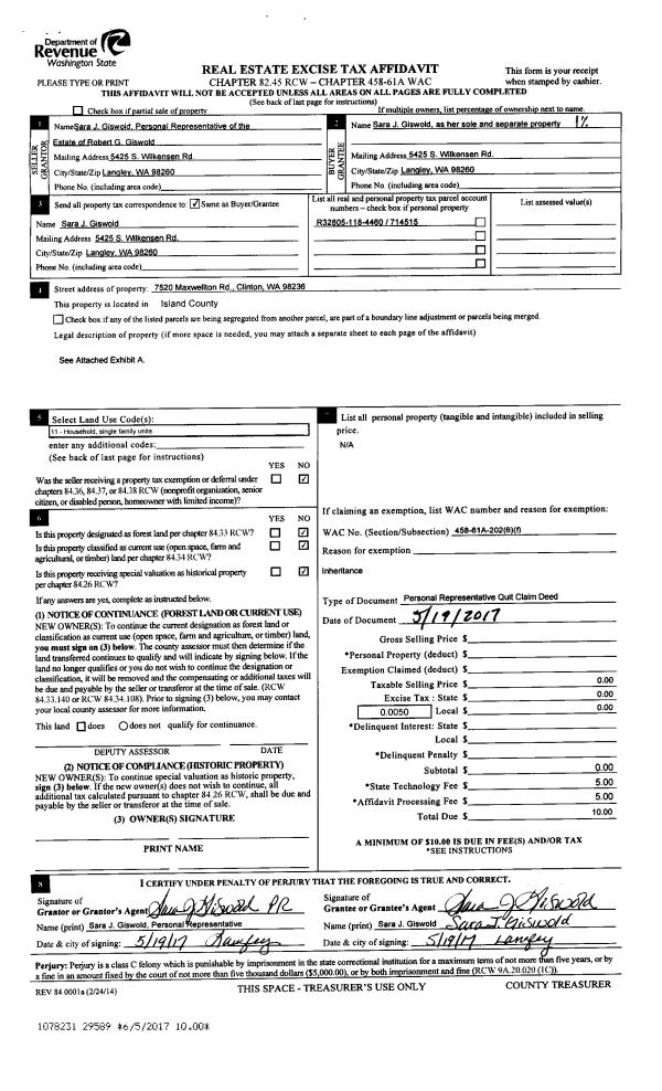 | Mailing Address: | CAPRI TEAL CARMICHAEL 1225 SW BARRINGTON DR OAK HARBOR, WA 98277 | % Ownership: | 100.0000000000% |