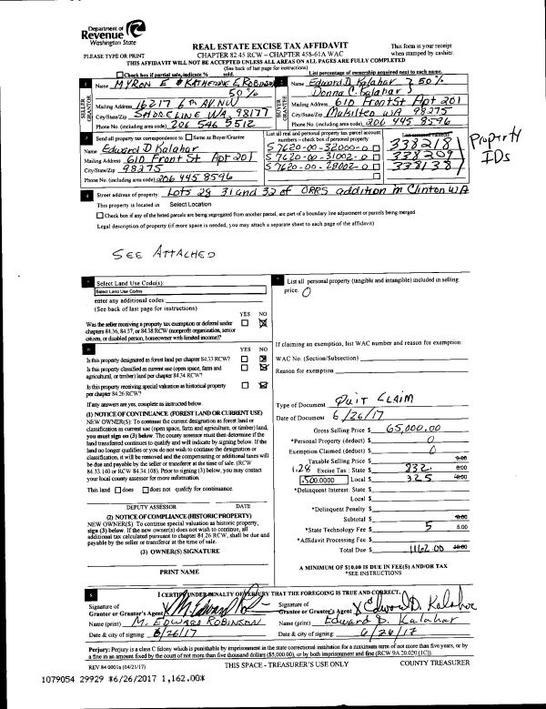 | 6 | 09/01/1985 | QCD | Quit Claim Deed | GILBERTSON, KENNETH L | CHRISTIANSEN, R W | | | $0.00 | 52701 | 85010684 |