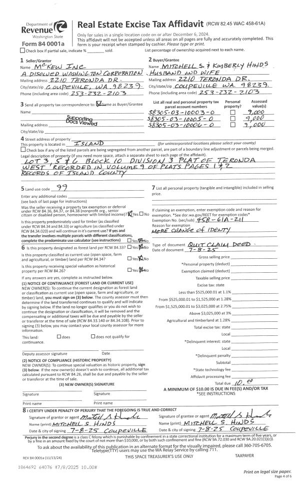 | Mailing Address: | PO BOX 20 COUPEVILLE, WA 98239-0020 | % Ownership: | 100.0000000000% |