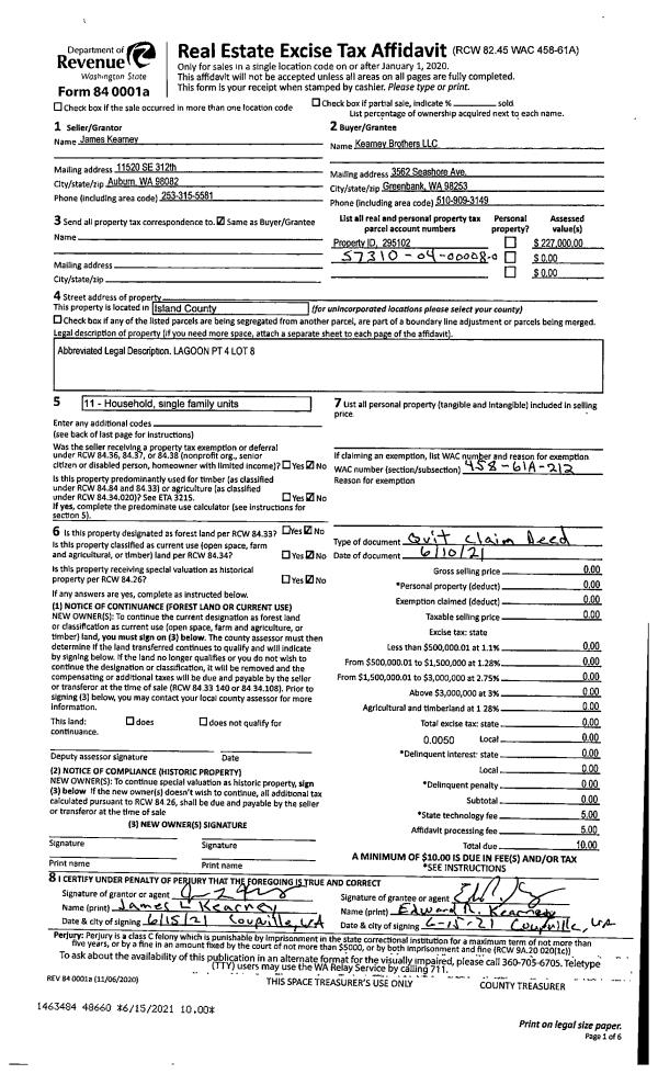 | Mailing Address: | 5395 WILKINSON ROAD LANGLEY, WA 98260 | % Ownership: | 100.0000000000% |