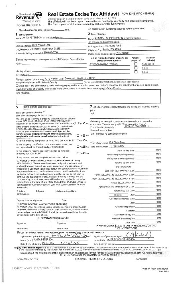 | SWHIDPRBD | P & R S Whidbey BOND | 0.0152817568 | $250,000 | $250,000 | $3.82 | | |