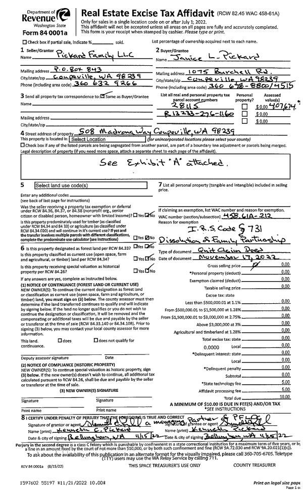| Tax Area: | 712 - APPRAISER-S Whid Schl Dist, outside Langley, improved, greater than 1 acre | Land Use Code | 11 |