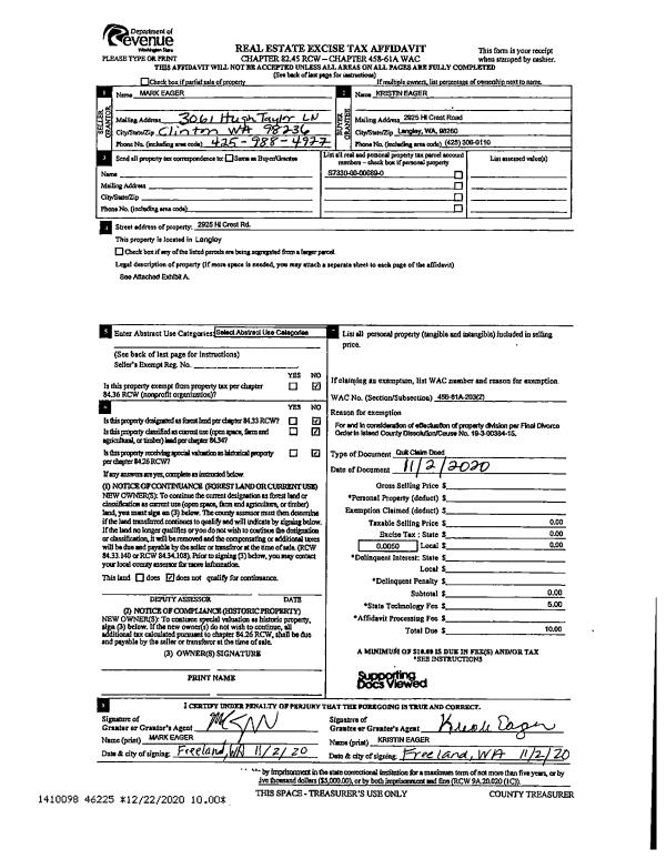 | Mailing Address: | LANELLE D BERGEN 4732 JONES RD OAK HARBOR, WA 98277 | % Ownership: | 100.0000000000% |
