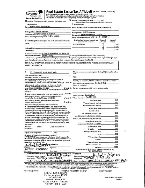 | Mailing Address: | MORGAN POOLE 739 SR 532 CAMANO ISLAND, WA 98282 | % Ownership: | 100.0000000000% |