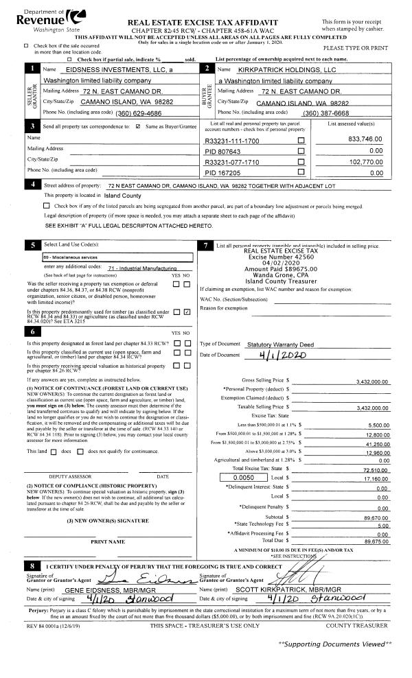 | Mailing Address: | DEDICATED TO LOT OWNERS 6540 EBB TIDE LN FREELAND, WA 98249 | % Ownership: | 100.0000000000% |